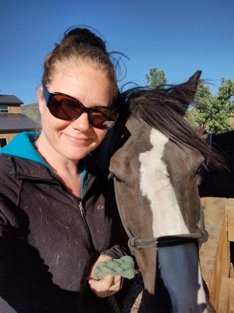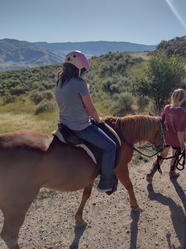 Bogart was a whole mood—a buggy horse with more personality than training miles under saddle, and I was apparently just a decorative fly on his back for most of the morning. He treated our ride more like a scenic buffet, snacking on mountain weeds and taking unapproved detours through ditches like it was part of the itinerary and generally reminded me that I wasn’t the boss of much.