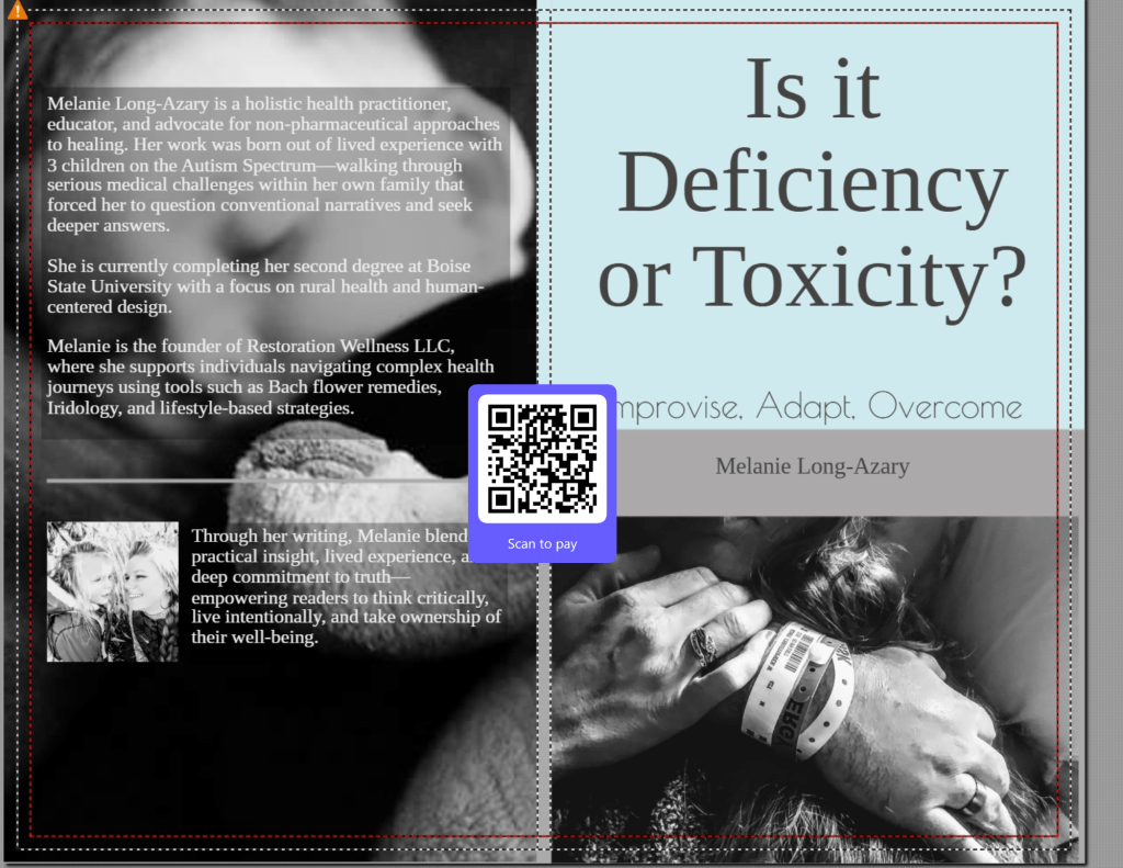 It is also what led me to write my first book, Is It Deficiency or Toxicity? Improvise. Adapt. Overcome. Alongside it, I created a 100-page Bach Flowers Coloring and Reflection Workbook, because understanding the body is not only physical. It is emotional. It is reflective. It requires us to slow down long enough to notice what we may have overlooked.