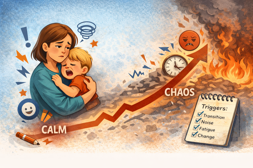 When a child’s system reaches threshold, escalation can appear immediate, even if the underlying load has been accumulating over time.
